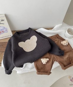 - Tên sản phẩm: Áo len Sweater dệt kinh tay dài in hoạt hình gấu