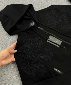 Shoponline24h chuyên phân phối và bán lẻ bộ áo nỉ Philipp Plein hổ thêu có mũ chất liệu nỉ gai dày dặn logo tag sắt, túi khoá zip lên fom siêu ưu đãi giá rẻ trên toàn quốc.