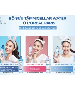 - L’Oréal Paris Micellar Water 3-in-1 Refreshing Even For Sensitive Skin (xanh dương nhạt): làm tươi mát da, dành cho da dầu/da hỗn hợp, phù hợp với cả da nhạy cảm.